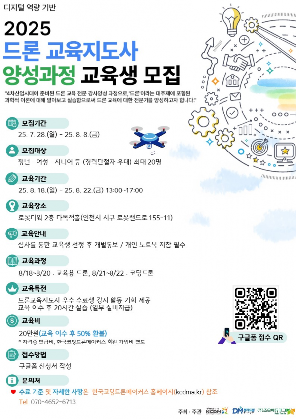 | 공지 | [교육생 모집 안내] 2025 드론 교육지도사 양성과정 | |||||
